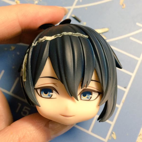 削ったりなんだりという力技でいれてますがこれにより髪に亀裂が…